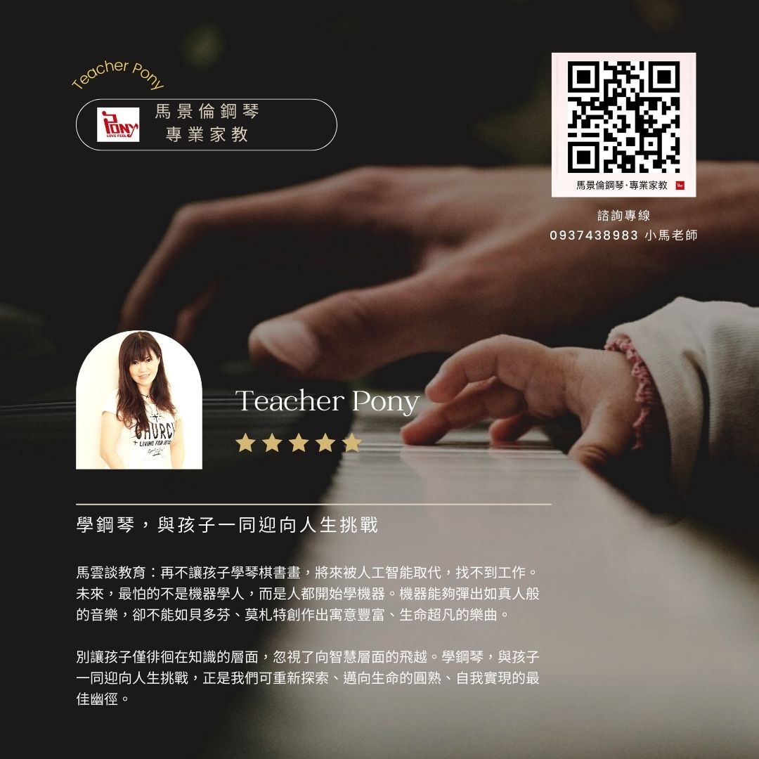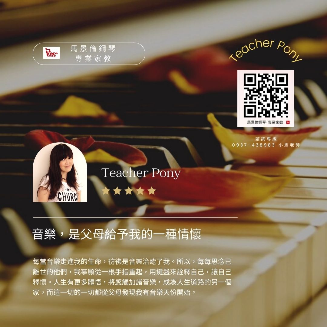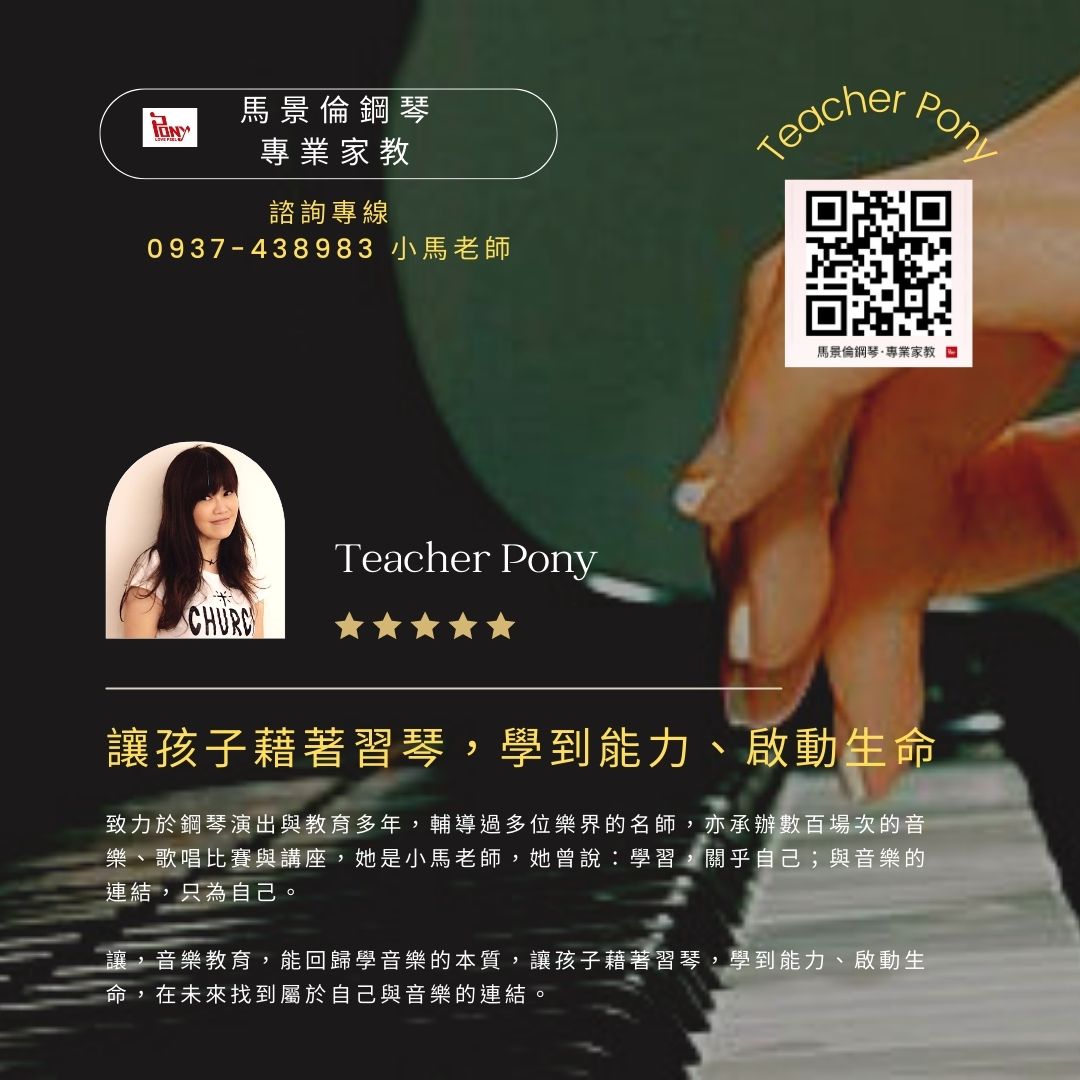 致力於鋼琴演出與教育多年,輔導過多位樂界的名師,亦承辦數百場次的音樂、歌唱比賽與講座,她是小馬老師,她曾說:學習,關乎自己;與音樂的連結,只為自己。