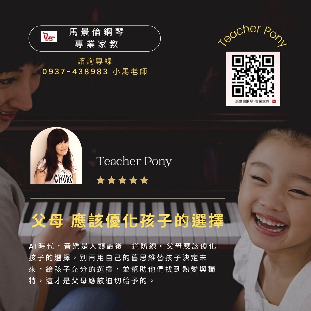 小馬老師真心忠告:AI時代,音樂是人類最後一道防線。父母應該優化孩子的選擇,別再用自己的舊思維替孩子決定未來,給孩子充分的選擇,並幫助他們找到熱愛與獨特,這才是父母應該迫切給予的。