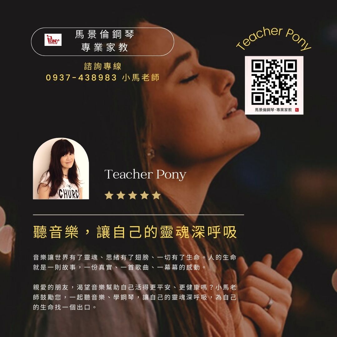 聲音是靈魂,音樂是血液。親愛的朋友,渴望音樂幫助自己活得更平安、更健康嗎?小馬老師鼓勵您,一起聽音樂、學鋼琴,讓自己的靈魂深呼吸,為自己的生命找一個出口。